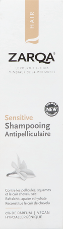 ZARQA Shampoo Anti-roos met menthol bevat stoffen die zijn gebaseerd op waardevolle, natuurlijke aminozuren die uiterst mild voor huid en haar zijn. De milde ingrediënten hydrateren de hoofdhuid en hebben een vochtinbrengende werking. ZARQA Shampoo Anti-roos is effectief bij roos en schilfers en zó mild dat ook mensen met een (zeer) gevoelige hoofdhuid de shampoo kunnen gebruiken. Shampoo Anti-roos verfrist hoofdhuid en haar, kalmeert, beschermt en hydrateert én brengt de hoofdhuid weer in balans.