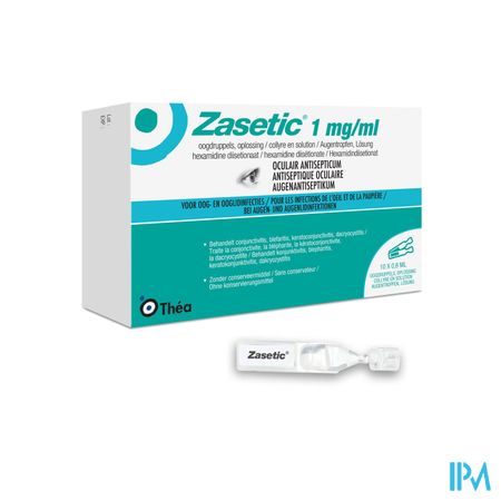 ZASETIC® is een antiseptische oogdruppel zonder bewaarmiddelen, gebruikt om het oog en de oogomgeving te ontsmetten bij infecties zoals conjunctivitis, blepharitis, keratoconjunctivitis of dacryocystitis.