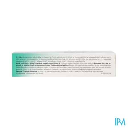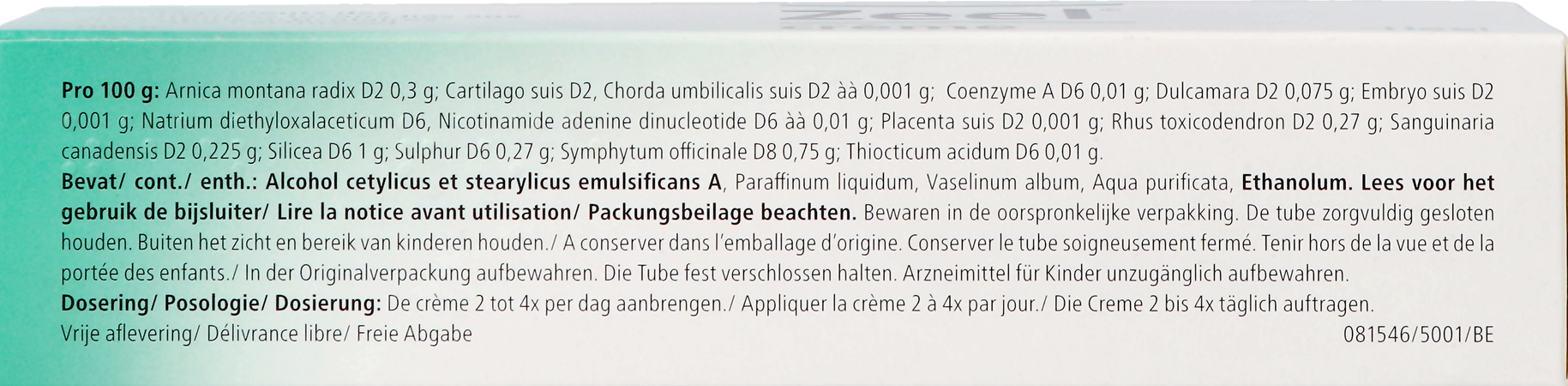 - De werkzame stoffen in 100 g crème zijn: Arnica montana radix D2 0,300 g; Cartilago suis D2,