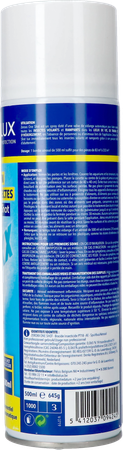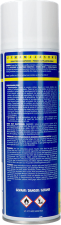 - De totale leegloopduur van een aerosol van 500 ml bedraagt ongeveer 210 seconden. Vermijd dat de nevel kan terechtkomen op kunststoffen, zoals bv. computerschermen, plexiglas, cd's, enz.