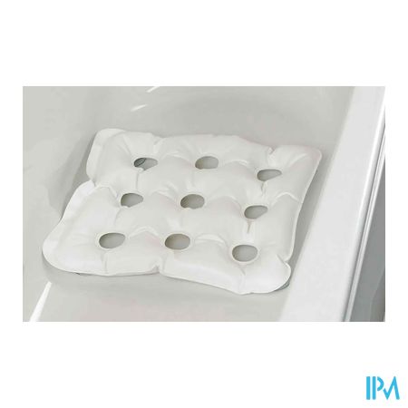 Dit vierkant opblaasbaar badkussen van 45,5 cm wordt met 4 zuignappen stevig op zijn plaats gehouden.