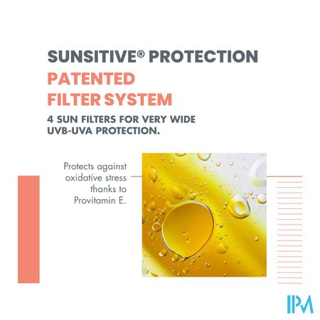 De hydra-beschermende textuur is speciaal ontwikkeld voor het gezicht en lichaam en zorgt voor een onmiddellijk en langdurig gevoel van comfort, een anti-uitdrogend effect en hydratatie gedurende zes uur. Zeer hoge bescherming tegen de zon voor de gevoelige huid die blootgesteld wordt aan intens zonlicht. De SPF 50+ Spray bevat een exclusieve combinatie van beschermende Sunsitive®-bestanddelen, ontwikkeld door Pierre Fabre Research: • Een gepatenteerd filtersysteem dat slechts 4 zonnefilters bevat die een zeer brede en stabiele UVB-/UVA-bescherming bieden en met een optimale huidtolerantie. • Provitamine E (pre-tocoferyl) met krachtige antioxiderende werking die de cellen beschermt tegen vrije radicalen. • Thermaal Water van Avène dat bekend staat om zijn kalmerende, anti-irriterende en verzachtende eigenschappen. Het is voorzien van een OPEN/STOP-systeem, waardoor het nog praktischer en milieuvriendelijker in gebruik is:OPEN:draai en de spuitmond komt tevoorschijn. STOP:draai en de spuitmond verdwijnt.