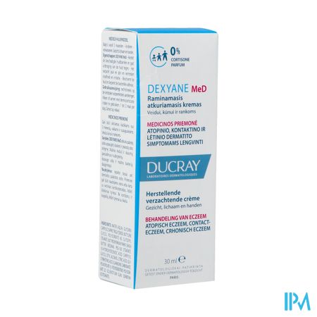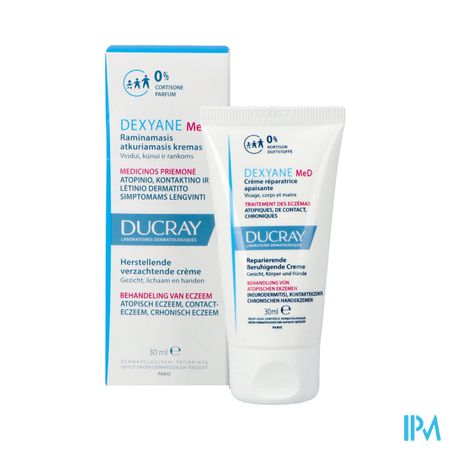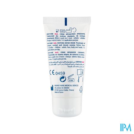 • Kan apart gebruikt worden of in combinatie met dermocorticoïden,.*DEXYANE MED herstellende verzachtende crème is medisch hulpmiddel van klasse IIa CE 0459. Lees aandachtig de instructies in de bijsluiter. Niet aanbrengen op de luierstreek van kinderen, noch op slijmvliezen. Mag niet gebruikt worden door zwangere vrouwen of vrouwen die borstvoeding geven. Vermijd direct contact met de ogen. Vanaf 3 maanden. Fabrikant : Pierre Fabre Médical Devices.