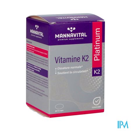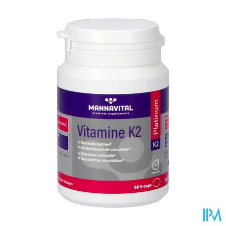 Mannavital Vitamine K2 Platinum V-caps 60 is een voedingssupplement, verkrijgbaar in uw buurtapotheek of online apotheek. Neem niet meer dan de aanbevolen dagelijkse dosis vermeld op de verpakking. Het vervangt geen gezonde levensstijl en gevarieerde en evenwichtige voeding. Vraag raad aan uw apotheker. Het product altijd buiten het bereik van kinderen houden.