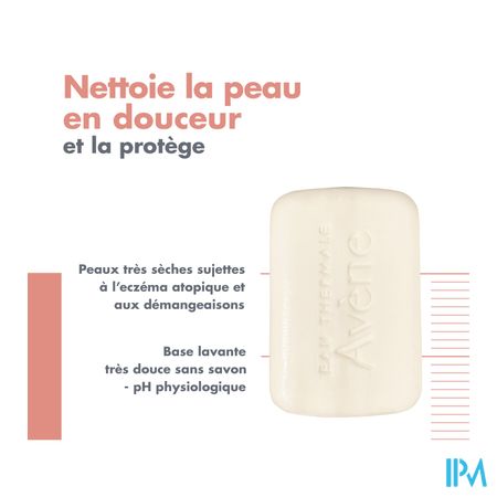 Dit zeepvrije dermatologische reinigingsblokje met een neutrale pH-waarde is ontworpen om het risico op allergische reacties tot een minimum te beperken, en de zeer goede huidtolerantie te bevorderen. Deze formule reinigt de huid op milde wijze en beschermt de zeer droge huid met neiging tot atopisch eczeem en jeuk. Deze reinigende verzorging is perfect aangepast aan de huid van baby's, kinderen en volwassenen, dankzij de combinatie van I-modulia®— het eerste post-biotische actieve bestanddeel van het Thermale Water van Avène, dat jeuk vermindert en irritaties helpt te bestrijden — evenals een lipidenfase met teunisbloemolie om de huidbarrière te voeden en te herstructureren.