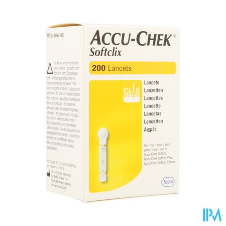 De Accu-Chek® Softclix lancetten verpakking bestaat uit 200 Accu-Chek® Softclix lancetten.