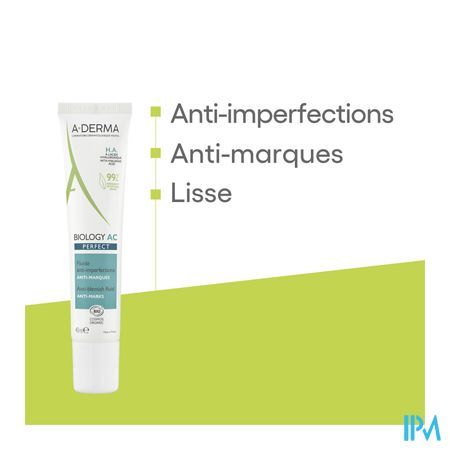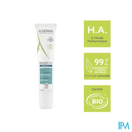 BIOLOGY AC PERFECT is een 2-in-1 huidverzorgingsproduct dat zowel op oneffenheden als op de eerste tekenen van huidveroudering inwerkt. Dit dermatologische en gecertificeerde BIO huidverzorgingsproduct helpt puistjes, mee-eters en hardnekkige rode en bruine vlekjes te verwijderen. Het corrigeert ook de eerste tekenen van huidveroudering door rimpels en fijne lijntjes glad te strijken en de huidtextuurweer effen en glad te maken. Het brengt het microbioom weer in balans en voorkomt het terugkomen. De anti-vervuilingsformule beschermt de huidbarrière tegen huidvervuilende deeltjes. Voor de vette, onzuivere huid met neiging tot acne van volwassenen. Een lichte, vloeibare crème die is getest in combinatie met toonaangevende topische en orale acnebehandelingen. De formule bestaat voor 99% uit bestanddelen van natuurlijke oorsprong, waaronder Rhealba® Haver uit van biologische teelt. Lichtjes geparfumeerd met de geur van aromatische planten. Vegan info: bevat geen ingrediënten van dierlijke oorsprong.