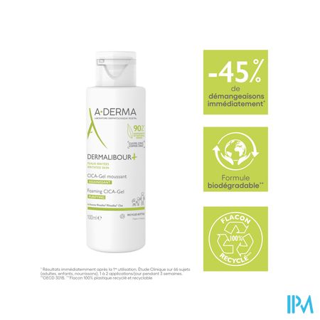 Het dermatologisch en plantaardige laboratorium A-DERMA komt tegemoet aan de behoeften van de geïrriteerde en kwetsbare huid die rood is, jeukt en nood heeft aan een hygiëneproduct dat zowel mild als zuiverend is. DERMALIBOUR + CICA – Schuimende Reinigingsgel is geschikt voor de geïrriteerde huid van het hele gezin, reinigt in alle zachtheid en kalmeert onmiddellijk en zuivert de huid. Het bevat een koper-zinkcomplex, Rhealba® Haverplantextract en ultramilde oppervlakteactieve stoffen. De formule, met 90% ingrediënten van natuurlijke oorsprong en een fysiologische pH, vormt een delicaat en romig schuim dat niet prikt in de ogen. Het kan worden gebruikt op het lichaam, de hoofdhuid en zelfs op het gezicht en de uitwendige intieme delen. BIOLOGISCH AFBREEKBARE* formule, niet geparfumeerd en zonder zeep. DERMALIBOUR+ CICA – Zuiverende Schuimende Reinigingsgel kalmeert irritaties en kan overal en door iedereen gebruikt worden (baby's, kinderen, volwassenen).