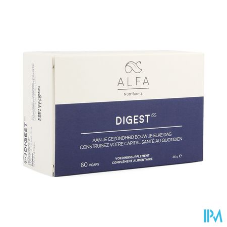 Alfa Digest V-caps 60 is een voedingssupplement, verkrijgbaar in uw buurtapotheek of online apotheek. Neem niet meer dan de aanbevolen dagelijkse dosis vermeld op de verpakking. Het vervangt geen gezonde levensstijl en gevarieerde en evenwichtige voeding. Vraag raad aan uw apotheker. Het product altijd buiten het bereik van kinderen houden.