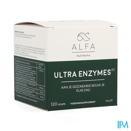 Alfa Ultra Enzymes Vcaps 120 is een voedingssupplement, verkrijgbaar in uw buurtapotheek of online apotheek. Neem niet meer dan de aanbevolen dagelijkse dosis vermeld op de verpakking. Het vervangt geen gezonde levensstijl en gevarieerde en evenwichtige voeding. Vraag raad aan uw apotheker. Het product altijd buiten het bereik van kinderen houden.