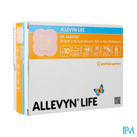 ALLEVYN Life is een meerlaags kompres, speciaal ontworpen voor mensen en hun alledaagse activiteiten en bevat o.a. een hydrocellulaire foamlaag, hyper-absorberende kern en afschermingslaag met de volgende kenmerken. Ademende topfilmAfschermingslaag Hyper-absorberende kern Hydrocellulaire foamlaag Siliconengel kleeflaag De unieke vier-lobbige vorm met brede rand is special ontworpen om perfect op het lichaam aan te sluiten en laat patiënten toe hiermee te douchen: ALLEVYN Life is voor elke wond op elke locatie.