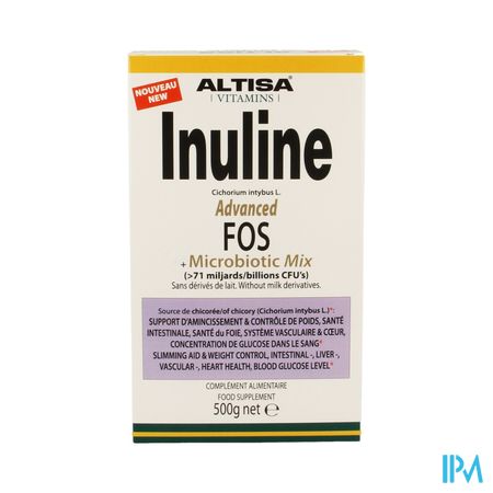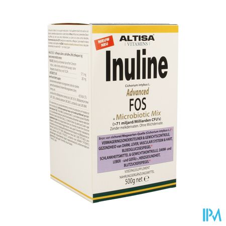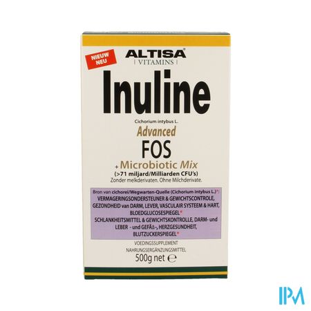 Altisa Inuline Adv.fos Preflora+proflora Mix 500g is een voedingssupplement, verkrijgbaar in uw buurtapotheek of online apotheek. Neem niet meer dan de aanbevolen dagelijkse dosis vermeld op de verpakking. Het vervangt geen gezonde levensstijl en gevarieerde en evenwichtige voeding. Vraag raad aan uw apotheker. Het product altijd buiten het bereik van kinderen houden.