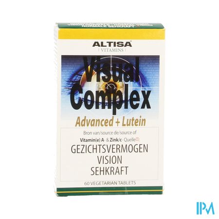 Altisa Visual Complex Advanced+luteine Tabl 60 is een voedingssupplement, verkrijgbaar in uw buurtapotheek of online apotheek. Neem niet meer dan de aanbevolen dagelijkse dosis vermeld op de verpakking. Het vervangt geen gezonde levensstijl en gevarieerde en evenwichtige voeding. Vraag raad aan uw apotheker. Het product altijd buiten het bereik van kinderen houden.