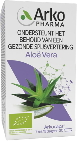 Arkocaps Aloe Vera Bio Caps 30 is een voedingssupplement, verkrijgbaar in uw buurtapotheek of online apotheek. Neem niet meer dan de aanbevolen dagelijkse dosis vermeld op de verpakking. Het vervangt geen gezonde levensstijl en gevarieerde en evenwichtige voeding. Vraag raad aan uw apotheker. Het product altijd buiten het bereik van kinderen houden.