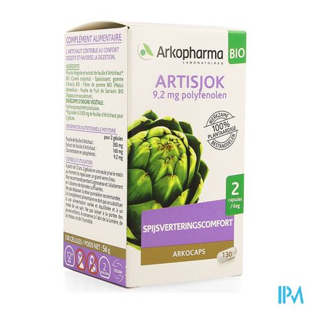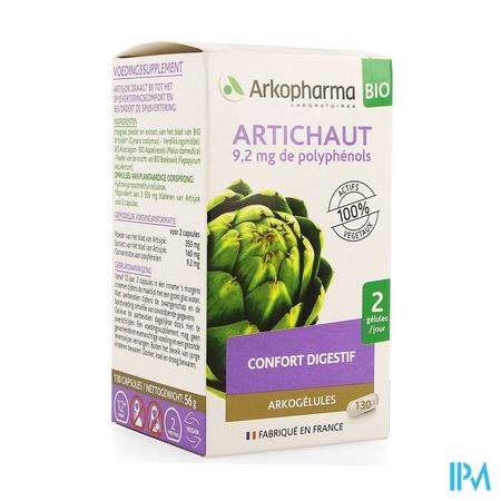 Arkocaps Artisjok Bio Caps 130 is een voedingssupplement, verkrijgbaar in uw buurtapotheek of online apotheek. Neem niet meer dan de aanbevolen dagelijkse dosis vermeld op de verpakking. Het vervangt geen gezonde levensstijl en gevarieerde en evenwichtige voeding. Vraag raad aan uw apotheker. Het product altijd buiten het bereik van kinderen houden.