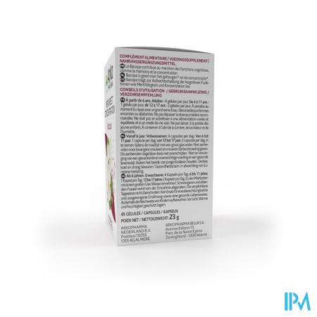 Arkocapsules® Bacopa is een voedingssupplement, speciaal geformuleerd voor personen die hun geheugen en concentratie wensen te behouden.