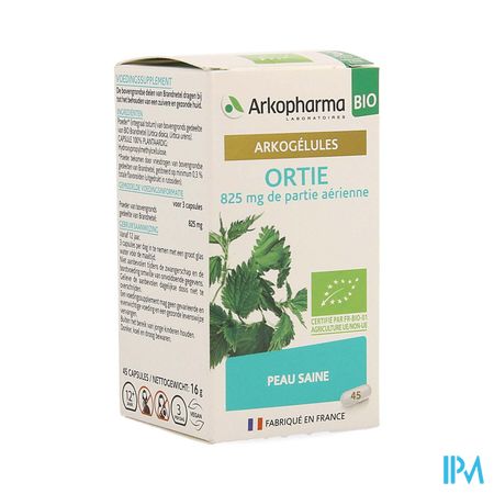 Arkocaps Brandnetel Bio Caps 45 Nf is een voedingssupplement, verkrijgbaar in uw buurtapotheek of online apotheek. Neem niet meer dan de aanbevolen dagelijkse dosis vermeld op de verpakking. Het vervangt geen gezonde levensstijl en gevarieerde en evenwichtige voeding. Vraag raad aan uw apotheker. Het product altijd buiten het bereik van kinderen houden.