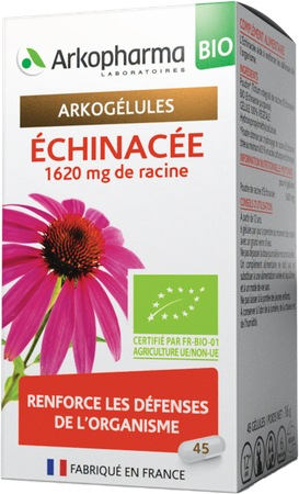 Arkocaps Echinacea Bio Caps 45 Nf is een voedingssupplement, verkrijgbaar in uw buurtapotheek of online apotheek. Neem niet meer dan de aanbevolen dagelijkse dosis vermeld op de verpakking. Het vervangt geen gezonde levensstijl en gevarieerde en evenwichtige voeding. Vraag raad aan uw apotheker. Het product altijd buiten het bereik van kinderen houden.