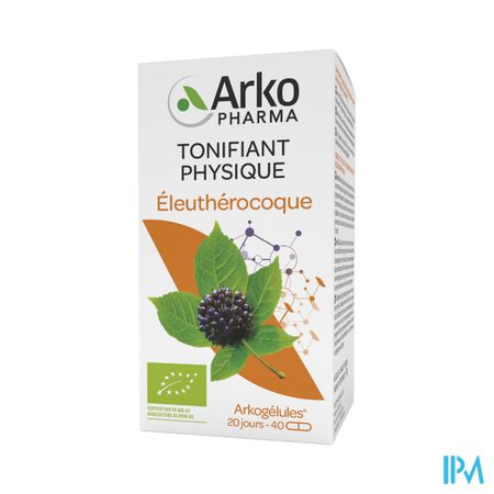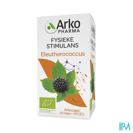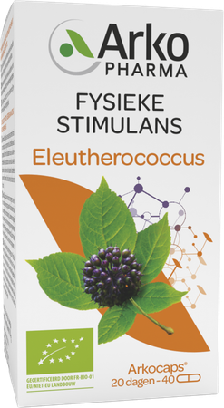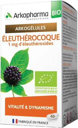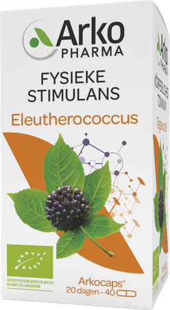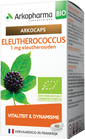 Arkocaps Eleutherococcus Bio Caps 40 is een voedingssupplement, verkrijgbaar in uw buurtapotheek of online apotheek. Neem niet meer dan de aanbevolen dagelijkse dosis vermeld op de verpakking. Het vervangt geen gezonde levensstijl en gevarieerde en evenwichtige voeding. Vraag raad aan uw apotheker. Het product altijd buiten het bereik van kinderen houden.