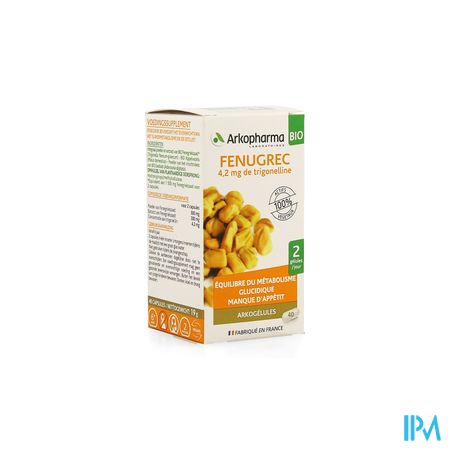 Arkocapsules® Fenegriek is een voedingssupplement, speciaal geformuleerd voor personen die hun eetlust wensen te bevorderen.Dankzij zijn unieke knowhow, restitueert Arkopharma 100 % van de werkzame bestanddelen van Fenegriek, die in synergie werken met het grootste respect voor uw lichaam.