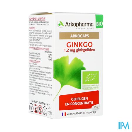 Arkocaps Ginkgo Bio Caps 150 is een voedingssupplement, verkrijgbaar in uw buurtapotheek of online apotheek. Neem niet meer dan de aanbevolen dagelijkse dosis vermeld op de verpakking. Het vervangt geen gezonde levensstijl en gevarieerde en evenwichtige voeding. Vraag raad aan uw apotheker. Het product altijd buiten het bereik van kinderen houden.