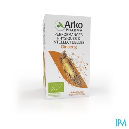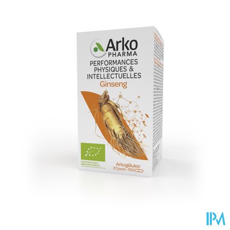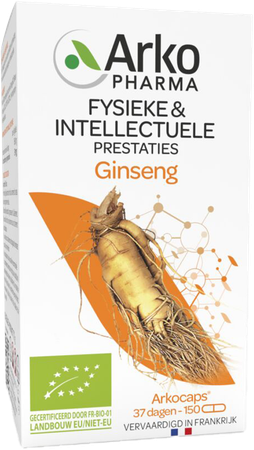 Arkocaps Ginseng Bio Caps 150 is een voedingssupplement, verkrijgbaar in uw buurtapotheek of online apotheek. Neem niet meer dan de aanbevolen dagelijkse dosis vermeld op de verpakking. Het vervangt geen gezonde levensstijl en gevarieerde en evenwichtige voeding. Vraag raad aan uw apotheker. Het product altijd buiten het bereik van kinderen houden.