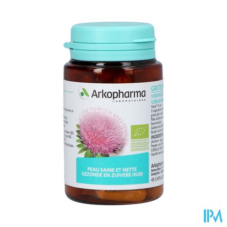 Arkocaps Grote Klis Bio 45 is een voedingssupplement, verkrijgbaar in uw buurtapotheek of online apotheek. Neem niet meer dan de aanbevolen dagelijkse dosis vermeld op de verpakking. Het vervangt geen gezonde levensstijl en gevarieerde en evenwichtige voeding. Vraag raad aan uw apotheker. Het product altijd buiten het bereik van kinderen houden.