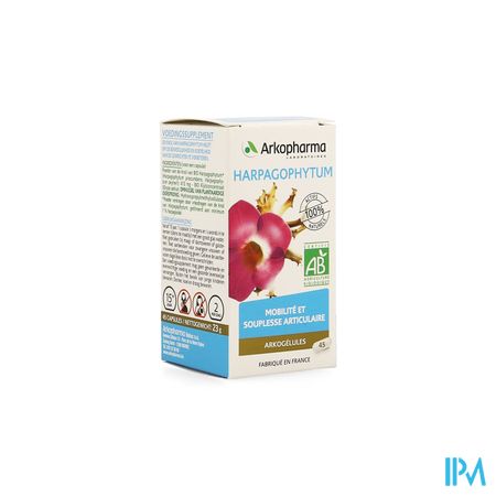 Arkocaps Harpadol Bio Caps 45 Nf is een voedingssupplement, verkrijgbaar in uw buurtapotheek of online apotheek. Neem niet meer dan de aanbevolen dagelijkse dosis vermeld op de verpakking. Het vervangt geen gezonde levensstijl en gevarieerde en evenwichtige voeding. Vraag raad aan uw apotheker. Het product altijd buiten het bereik van kinderen houden.