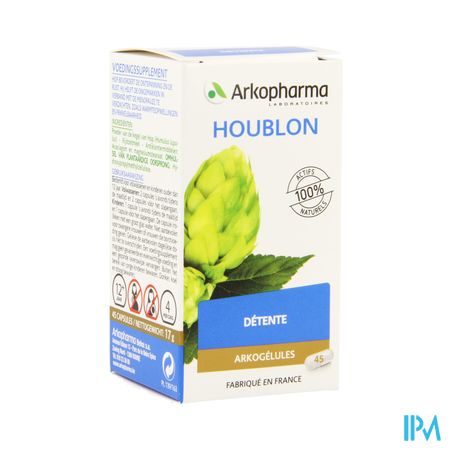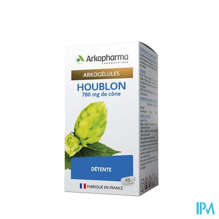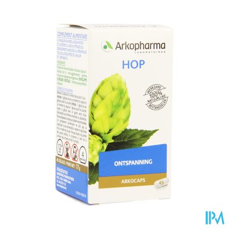 Arkocaps Hop Plantaardig 45 is een voedingssupplement, verkrijgbaar in uw buurtapotheek of online apotheek. Neem niet meer dan de aanbevolen dagelijkse dosis vermeld op de verpakking. Het vervangt geen gezonde levensstijl en gevarieerde en evenwichtige voeding. Vraag raad aan uw apotheker. Het product altijd buiten het bereik van kinderen houden.