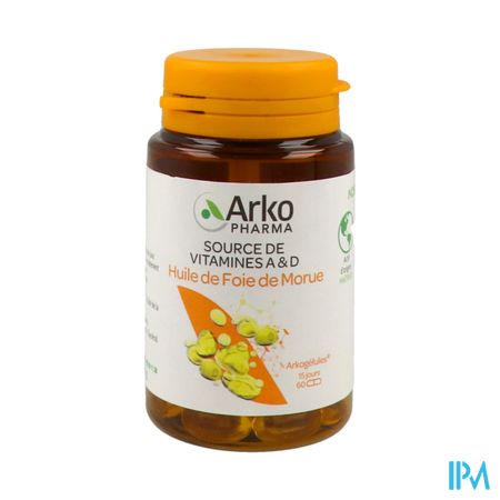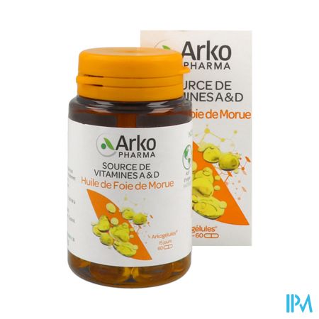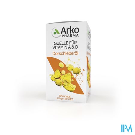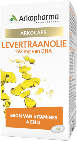 Arkocaps Levertraanolie 60 is een voedingssupplement, verkrijgbaar in uw buurtapotheek of online apotheek. Neem niet meer dan de aanbevolen dagelijkse dosis vermeld op de verpakking. Het vervangt geen gezonde levensstijl en gevarieerde en evenwichtige voeding. Vraag raad aan uw apotheker. Het product altijd buiten het bereik van kinderen houden.