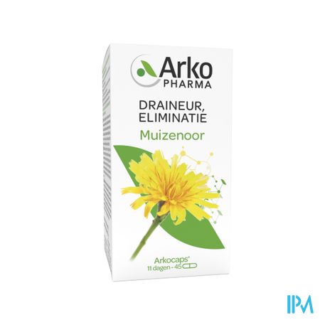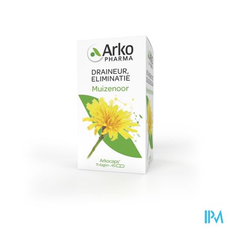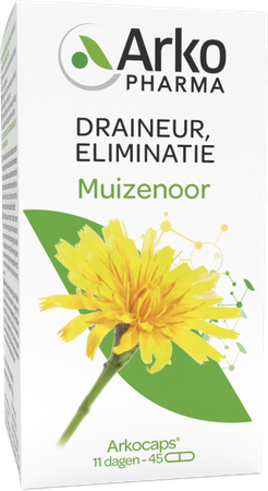Arkocapsules® Muizenoor is een voedingssupplement. Muizenoor heeft een drainerende werking en bevordert de eliminatiefuncties van het organisme.