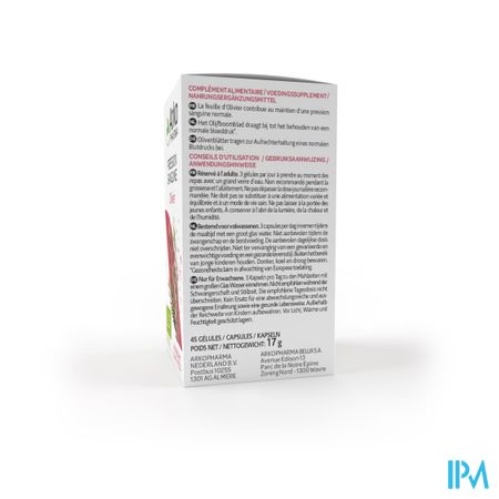 Arkocaps Olijfboom Bio Caps 45 Nf is een voedingssupplement, verkrijgbaar in uw buurtapotheek of online apotheek. Neem niet meer dan de aanbevolen dagelijkse dosis vermeld op de verpakking. Het vervangt geen gezonde levensstijl en gevarieerde en evenwichtige voeding. Vraag raad aan uw apotheker. Het product altijd buiten het bereik van kinderen houden.