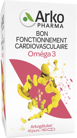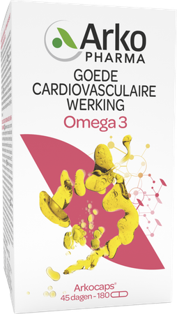 Arkocapsules® Omega 3 is een voedingssupplement. Arkocapsules® Omega 3, afkomstig uit de zee, is rijk aan twee essentiële vetzuren: eicosapentaeenzuur (EPA) en docosahexaeenzuur (DHA) die een normale werking van het hart helpen behouden. Het gunstige effect wordt verkregen door het dagelijkse verbruik van 250 mg van EPA en DHA.