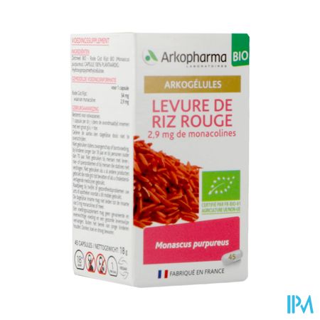 Arkocaps Rode Gist Rijst Bio Caps 45 Nf is een voedingssupplement, verkrijgbaar in uw buurtapotheek of online apotheek. Neem niet meer dan de aanbevolen dagelijkse dosis vermeld op de verpakking. Het vervangt geen gezonde levensstijl en gevarieerde en evenwichtige voeding. Vraag raad aan uw apotheker. Het product altijd buiten het bereik van kinderen houden.
