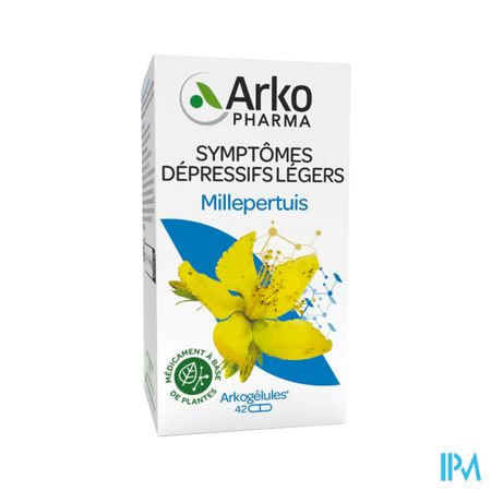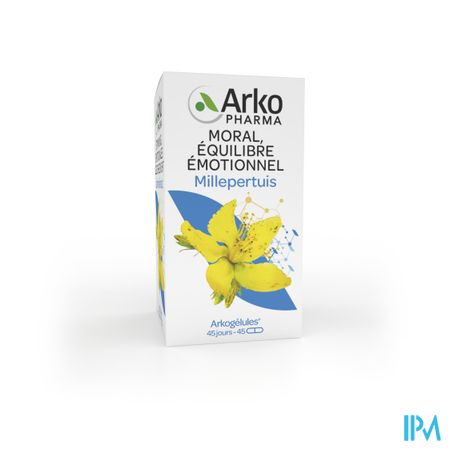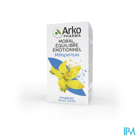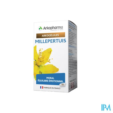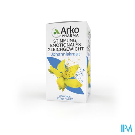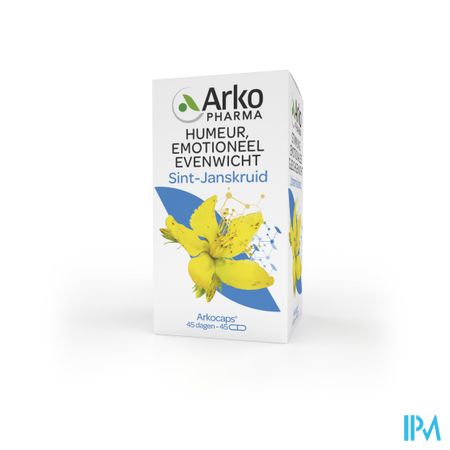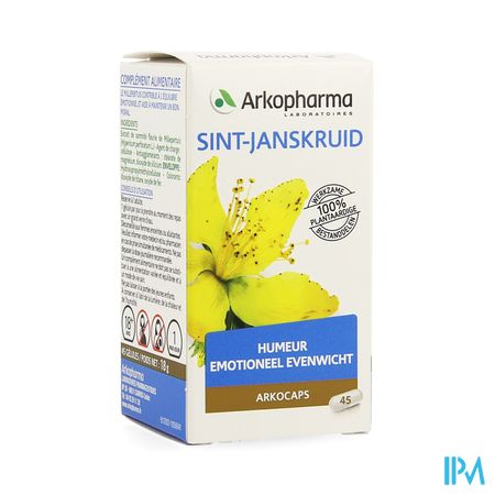 Arkocaps Sint Janskruid Plantaardig 45 is een voedingssupplement, verkrijgbaar in uw buurtapotheek of online apotheek. Neem niet meer dan de aanbevolen dagelijkse dosis vermeld op de verpakking. Het vervangt geen gezonde levensstijl en gevarieerde en evenwichtige voeding. Vraag raad aan uw apotheker. Het product altijd buiten het bereik van kinderen houden.