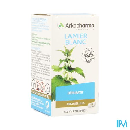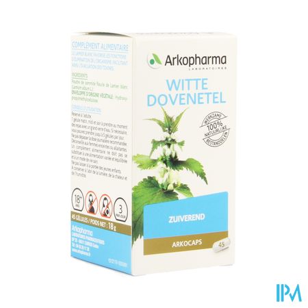 Arkocaps Witte Dovenetel Plantaardig 45 is een voedingssupplement, verkrijgbaar in uw buurtapotheek of online apotheek. Neem niet meer dan de aanbevolen dagelijkse dosis vermeld op de verpakking. Het vervangt geen gezonde levensstijl en gevarieerde en evenwichtige voeding. Vraag raad aan uw apotheker. Het product altijd buiten het bereik van kinderen houden.