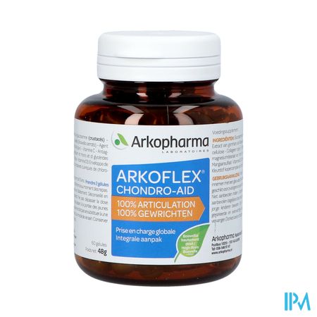 Arkoflex Chondro-aid 100% Gewrichten Caps 60 is een voedingssupplement, verkrijgbaar in uw buurtapotheek of online apotheek. Neem niet meer dan de aanbevolen dagelijkse dosis vermeld op de verpakking. Het vervangt geen gezonde levensstijl en gevarieerde en evenwichtige voeding. Vraag raad aan uw apotheker. Het product altijd buiten het bereik van kinderen houden.