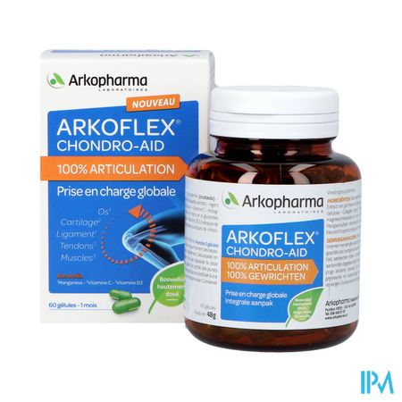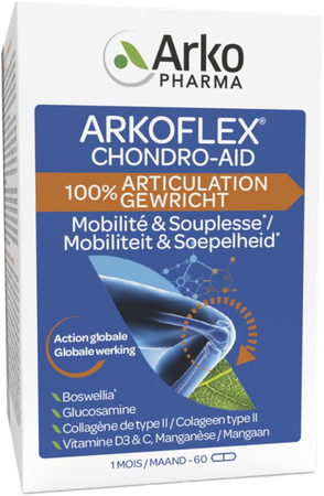 ARKOFLEX CHONDRO-AID® 100% Gewrichten wordt aanbevolen voor de totale verzorging van uw gewrichten. De complete formule bevat hoge dosis van Boswellia-extract om uw gewrichten comfortabel en normaal beweeglijk te houden.
