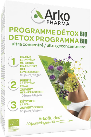 Arkofluides® Detox programma is een voedingssupplement speciaal geformuleerd om te helpen ontgiften, de toxines uit het lichaam te elimineren en de huid te doen stralen.