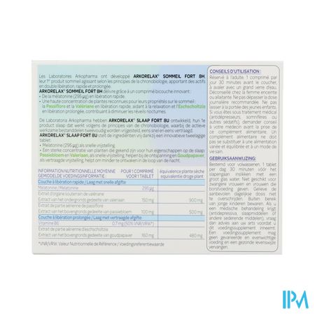 Arkorelax Sommeil Fort 8h Tabl 60 is een voedingssupplement, verkrijgbaar in uw buurtapotheek of online apotheek. Neem niet meer dan de aanbevolen dagelijkse dosis vermeld op de verpakking. Het vervangt geen gezonde levensstijl en gevarieerde en evenwichtige voeding. Vraag raad aan uw apotheker. Het product altijd buiten het bereik van kinderen houden.
