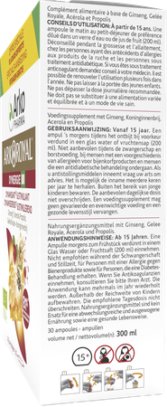 Arkoroyal Dynergie Bio Fl 20x10ml + 10x10ml Grat. is een voedingssupplement, verkrijgbaar in uw buurtapotheek of online apotheek. Neem niet meer dan de aanbevolen dagelijkse dosis vermeld op de verpakking. Het vervangt geen gezonde levensstijl en gevarieerde en evenwichtige voeding. Vraag raad aan uw apotheker. Het product altijd buiten het bereik van kinderen houden.