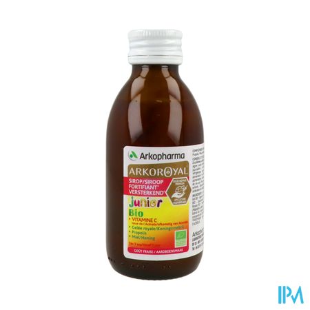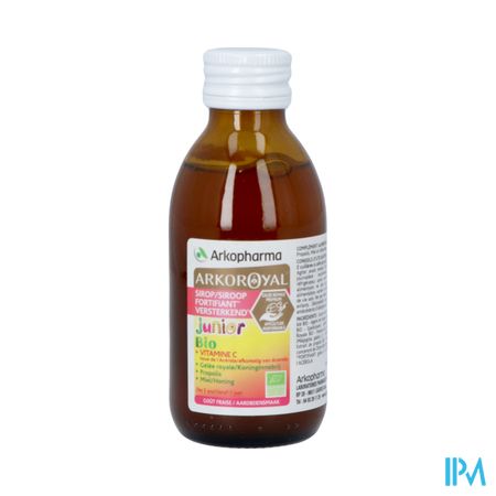 Arkoroyal Versterkende Siroop Junior Bio Fl 140ml is een voedingssupplement, verkrijgbaar in uw buurtapotheek of online apotheek. Neem niet meer dan de aanbevolen dagelijkse dosis vermeld op de verpakking. Het vervangt geen gezonde levensstijl en gevarieerde en evenwichtige voeding. Vraag raad aan uw apotheker. Het product altijd buiten het bereik van kinderen houden.