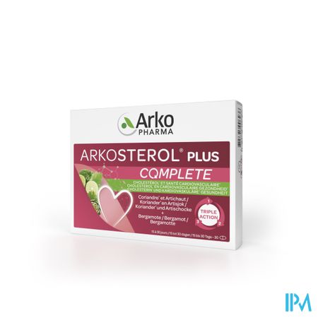 Arkosterol Plus Complete Comp 30 is een voedingssupplement, verkrijgbaar in uw buurtapotheek of online apotheek. Neem niet meer dan de aanbevolen dagelijkse dosis vermeld op de verpakking. Het vervangt geen gezonde levensstijl en gevarieerde en evenwichtige voeding. Vraag raad aan uw apotheker. Het product altijd buiten het bereik van kinderen houden.