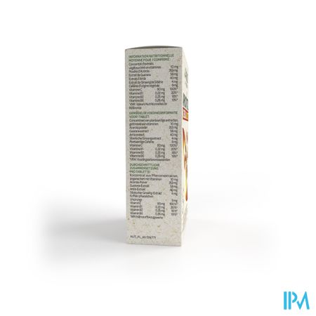 Het bevat natuurlijke vitamine C afkomstig van acerola en amla, vitamine B1, B2 en B6 100 % van plantaardige oorsprong voor een betere opname. Vitamine C helpt vermoeidheid te verminderen. De vitaminen B1, B2 en B6 dragen bij tot een goed energiemetabolisme.