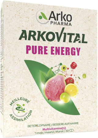 Verander van vitaminen met Arkovital® Pure Energy, kies voor 100% plantaardig! De laboratoria Arkopharma hebben speciaal Arkovital® Pure Energy ontwikkeld: hun 1e combinatie vitaminen en mineralen uitsluitend afkomstig van vruchten en planten, 100 % van plantaardige oorsprong, zonder chemisch ingrediënt, zonder toevoeging van kunstmatige vitaminen. Ze worden beter opgenomen door het lichaam en geven u een nieuw gevoel van vitaliteit!
