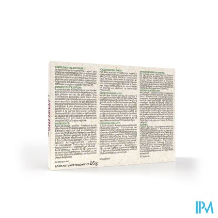 Arkovital Pure Energy Comp 30 is een voedingssupplement, verkrijgbaar in uw buurtapotheek of online apotheek. Neem niet meer dan de aanbevolen dagelijkse dosis vermeld op de verpakking. Het vervangt geen gezonde levensstijl en gevarieerde en evenwichtige voeding. Vraag raad aan uw apotheker. Het product altijd buiten het bereik van kinderen houden.