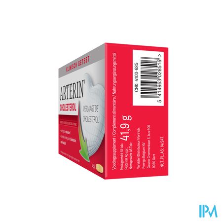Voorzorgsmaatregelen: Voedingssupplementen kunnen geen gevarieerde en evenwichtige voeding vervangen, noch een gezonde levensstijl. Het is niet bedoeld voor mensen die hun cholesterol niet onder controle moeten houden. De inname van meer dan 3 g toegevoegde plantensterolen/dag moet vermeden worden. (1 tab. bevat 120 mg plantensterolen – 2 tab. bevatten 240 mg plantensterolen). Raadpleeg uw arts indien u reeds cholesterolverlagende geneesmiddelen gebruikt. Niet geschikt tijdens de zwangerschap en bij borstvoeding. Enkel geschikt voor volwassenen. Arterin® Cholesterol dient gebruikt te worden als onderdeel van een uitgebalanceerde en gevarieerde voeding met regelmatige inname van groenten en fruit om het carotenoïdengehalte op peil te helpen houden.