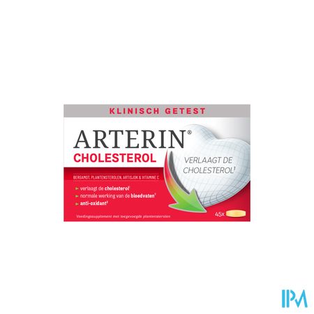 Arterin Cholesterol Comp 45 is een voedingssupplement, verkrijgbaar in uw buurtapotheek of online apotheek. Neem niet meer dan de aanbevolen dagelijkse dosis vermeld op de verpakking. Het vervangt geen gezonde levensstijl en gevarieerde en evenwichtige voeding. Vraag raad aan uw apotheker. Het product altijd buiten het bereik van kinderen houden.