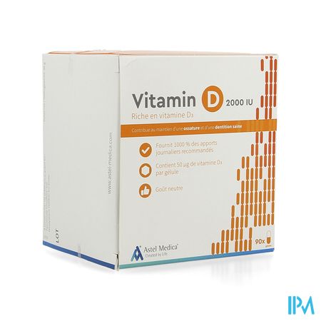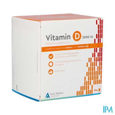 Astel Vitamin D 2000iu Caps 90 is een voedingssupplement, verkrijgbaar in uw buurtapotheek of online apotheek. Neem niet meer dan de aanbevolen dagelijkse dosis vermeld op de verpakking. Het vervangt geen gezonde levensstijl en gevarieerde en evenwichtige voeding. Vraag raad aan uw apotheker. Het product altijd buiten het bereik van kinderen houden.
