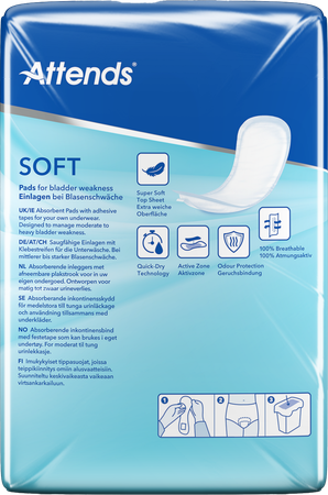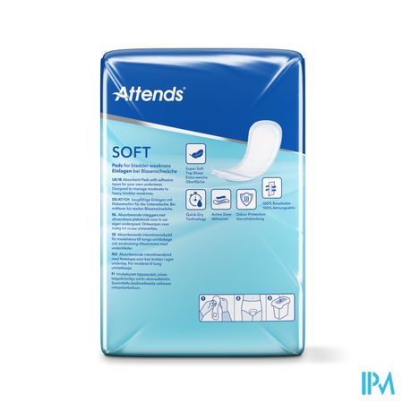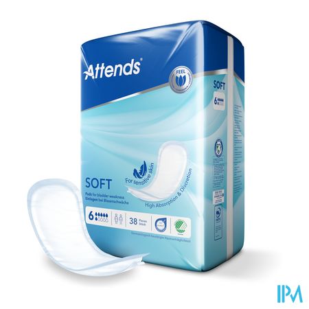 Attends Soft 6 en 7 hebben een sterk absorberende Quick-Dry tussenlaag en kern om langdurige droogheid en huidgezondheid te garanderen. Het vocht wordt raze De nieuwe Attends Soft 6 en 7 zijn comfortabele, zachte en dunne inleggers. De producten hebben een natuurlijke pasvorm voor een perfecte aansluiting op het lichaam. De zachte, elastische beschermrandjes bieden extra zekerheid tegen lekkage.